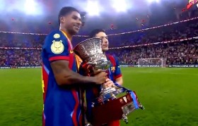 拉什福德拿到了在巴萨的第一座冠军奖杯,加...